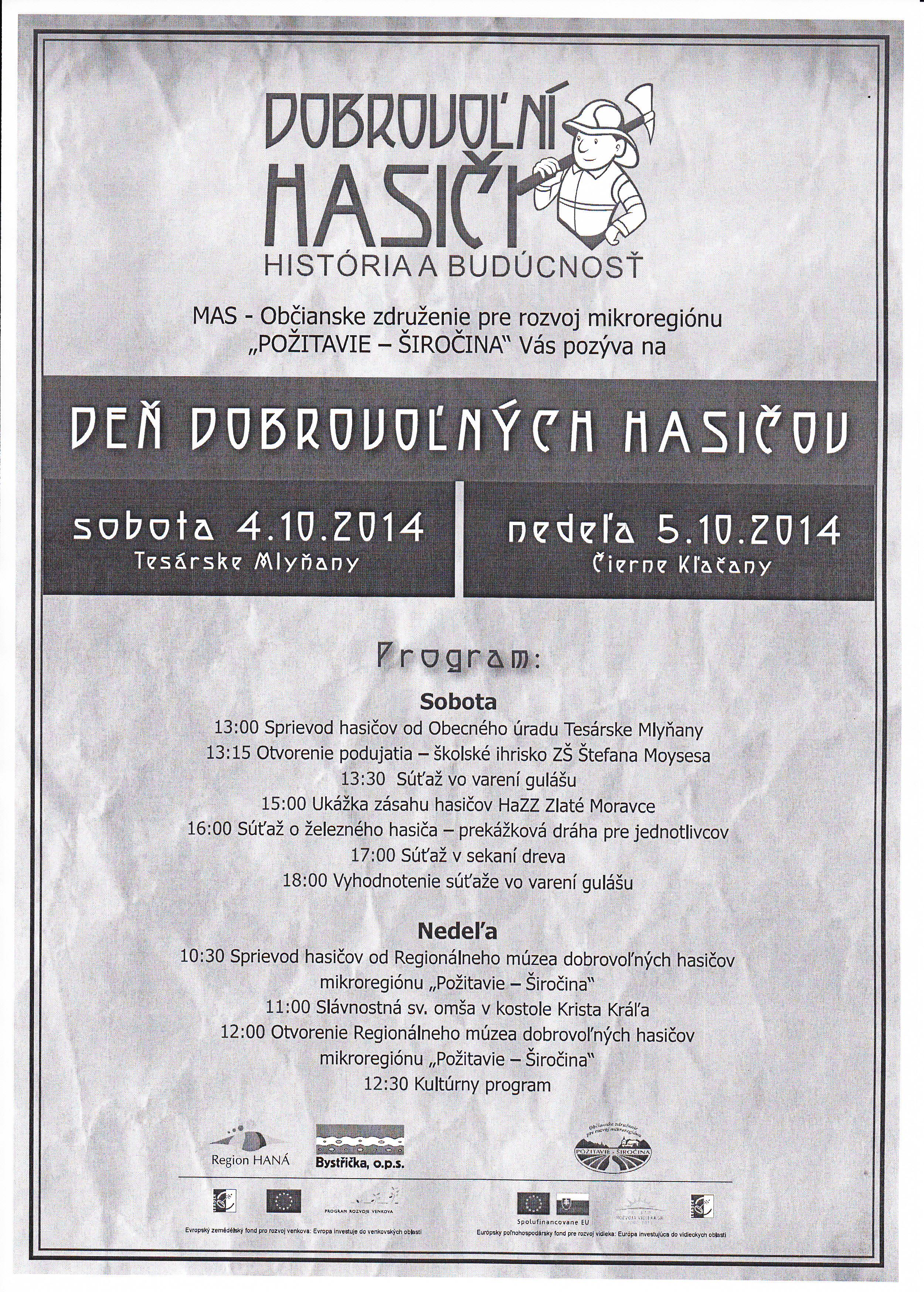 Program: 13.00 – sprievod hasičov od Obecného úradu Tesárske Mlyňany