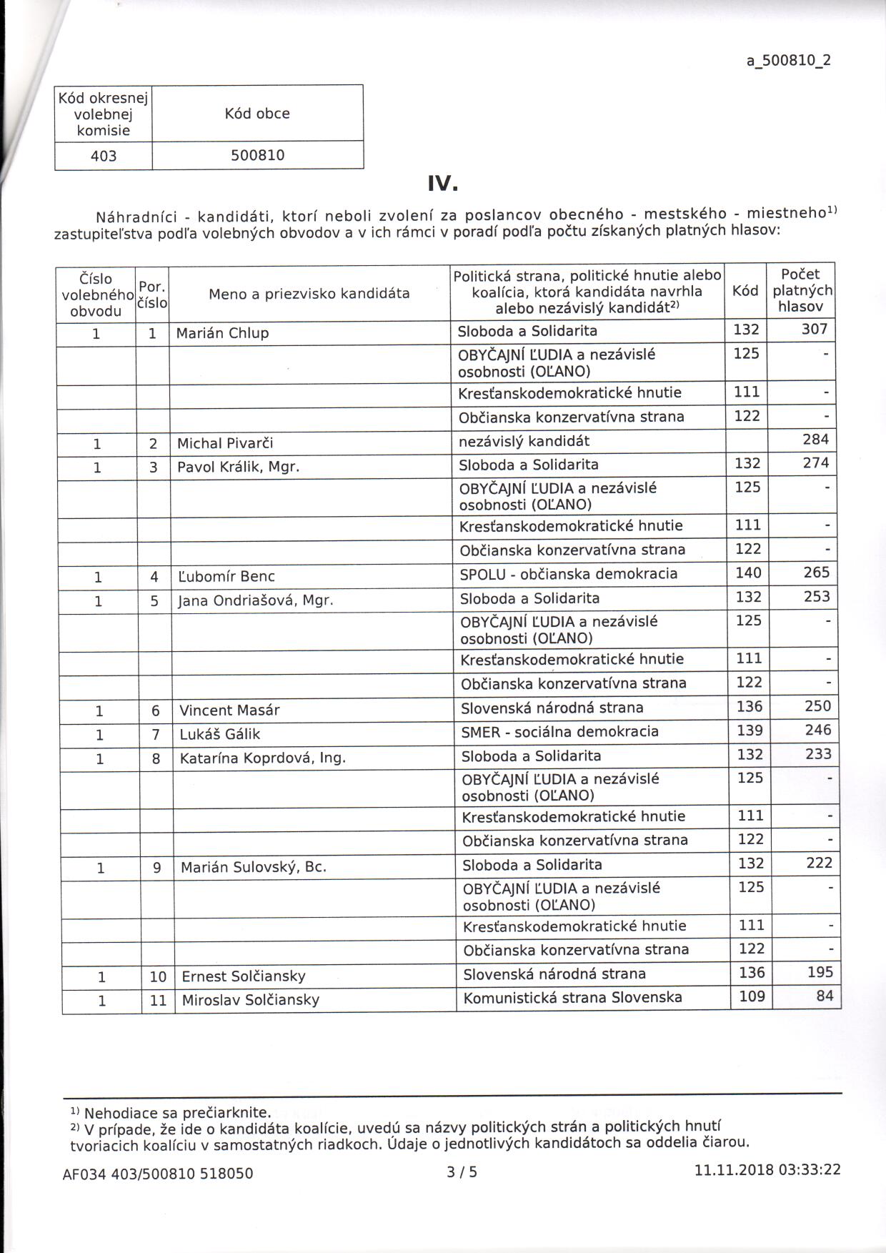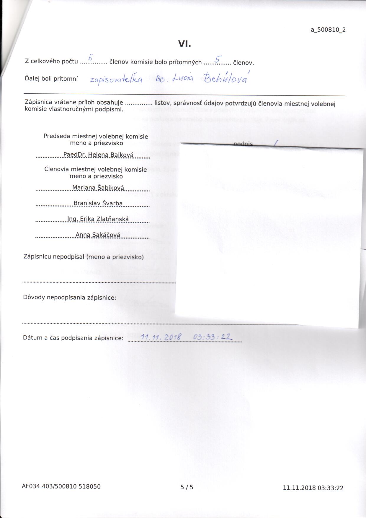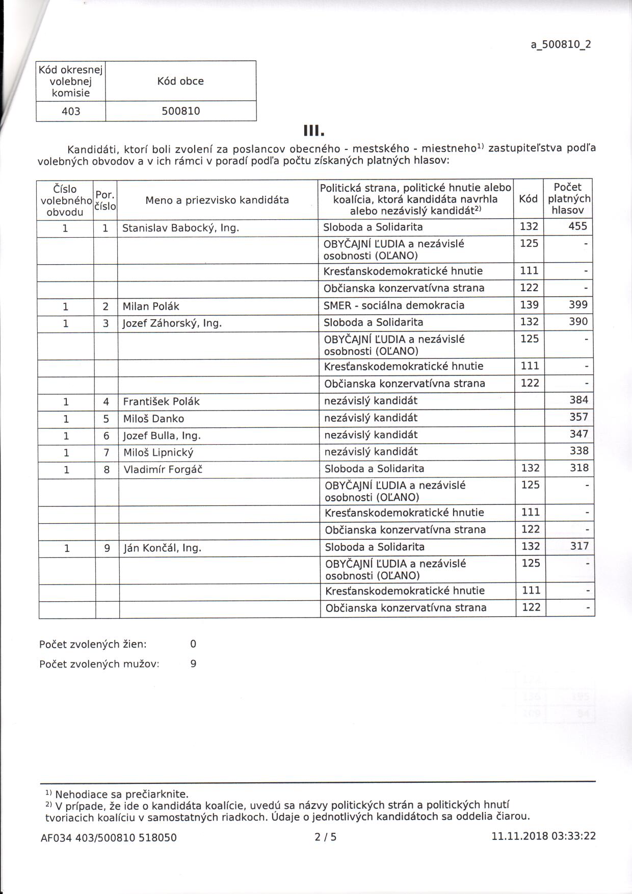 Voľby do orgánov samosprávy obcí 2018 – zápisnica