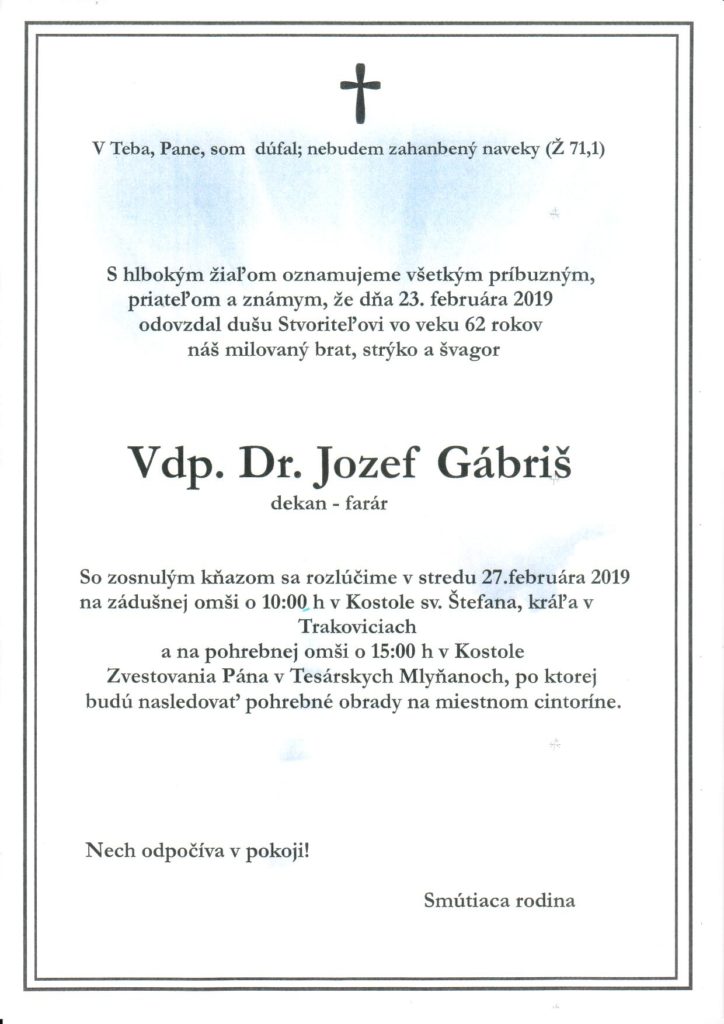 • Smútočný oznam