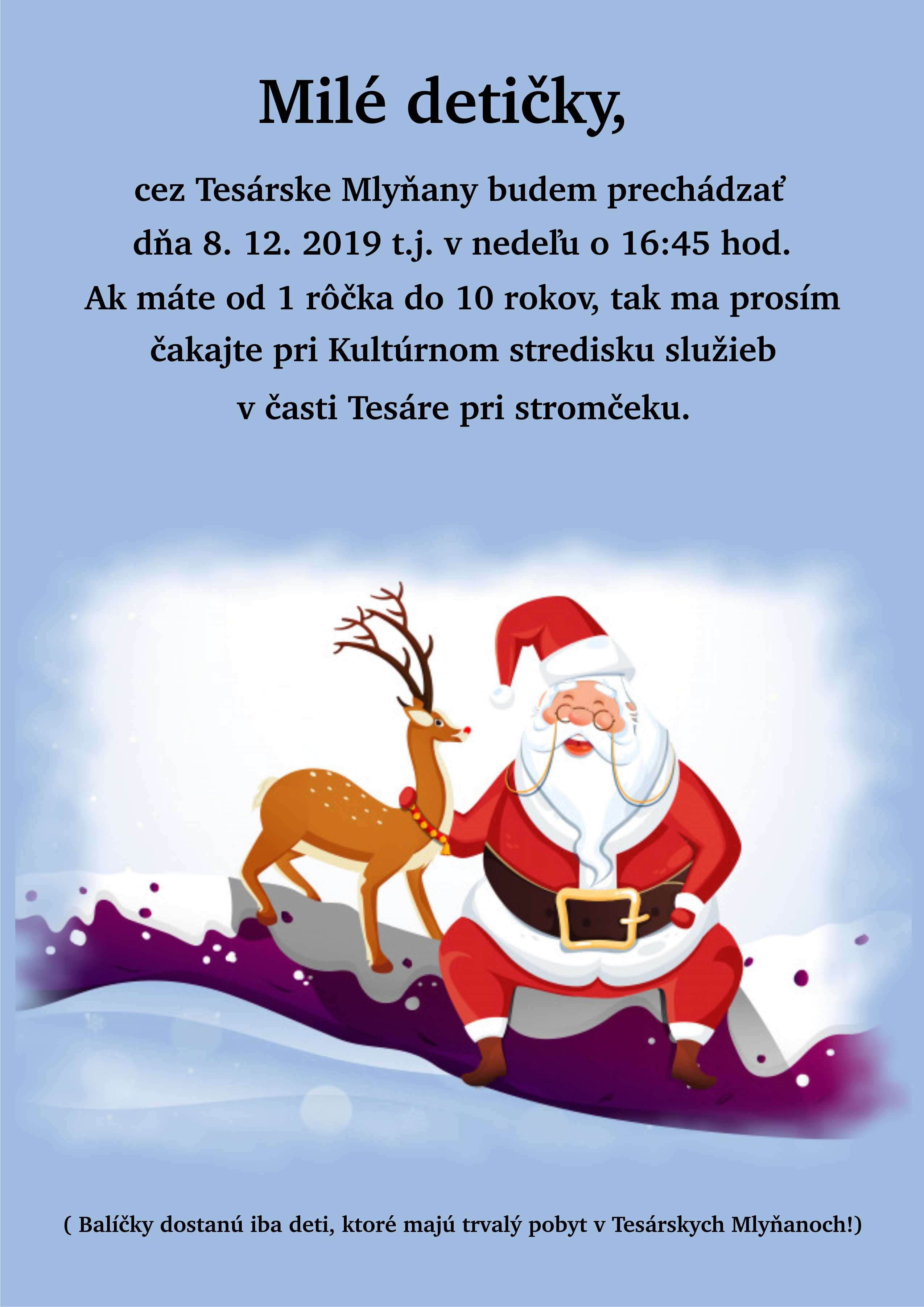 Srdečne Vás pozývame na stretnutie s Mikulášom.