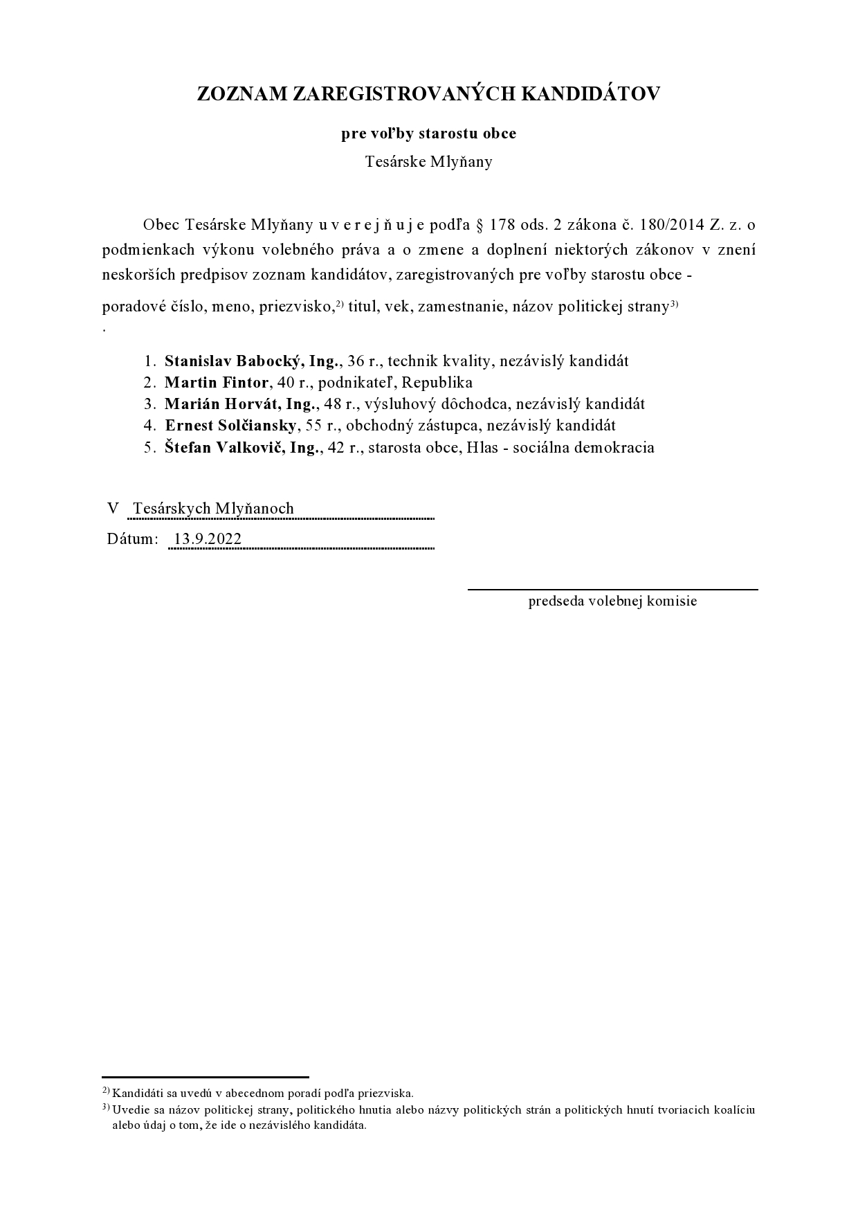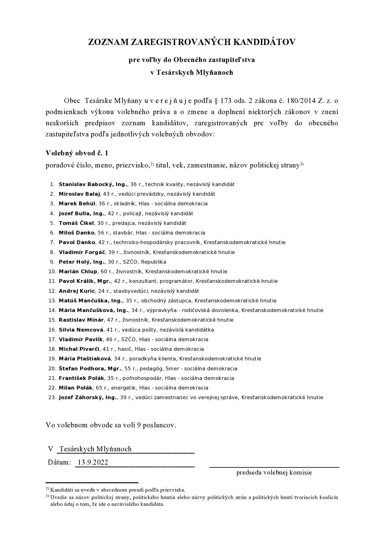 Zoznam zaregistrovaných kandidátov do volieb OSO 2022