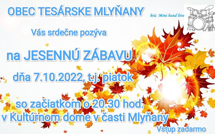 Srdečne Vás pozývame na Jesennú zábavu