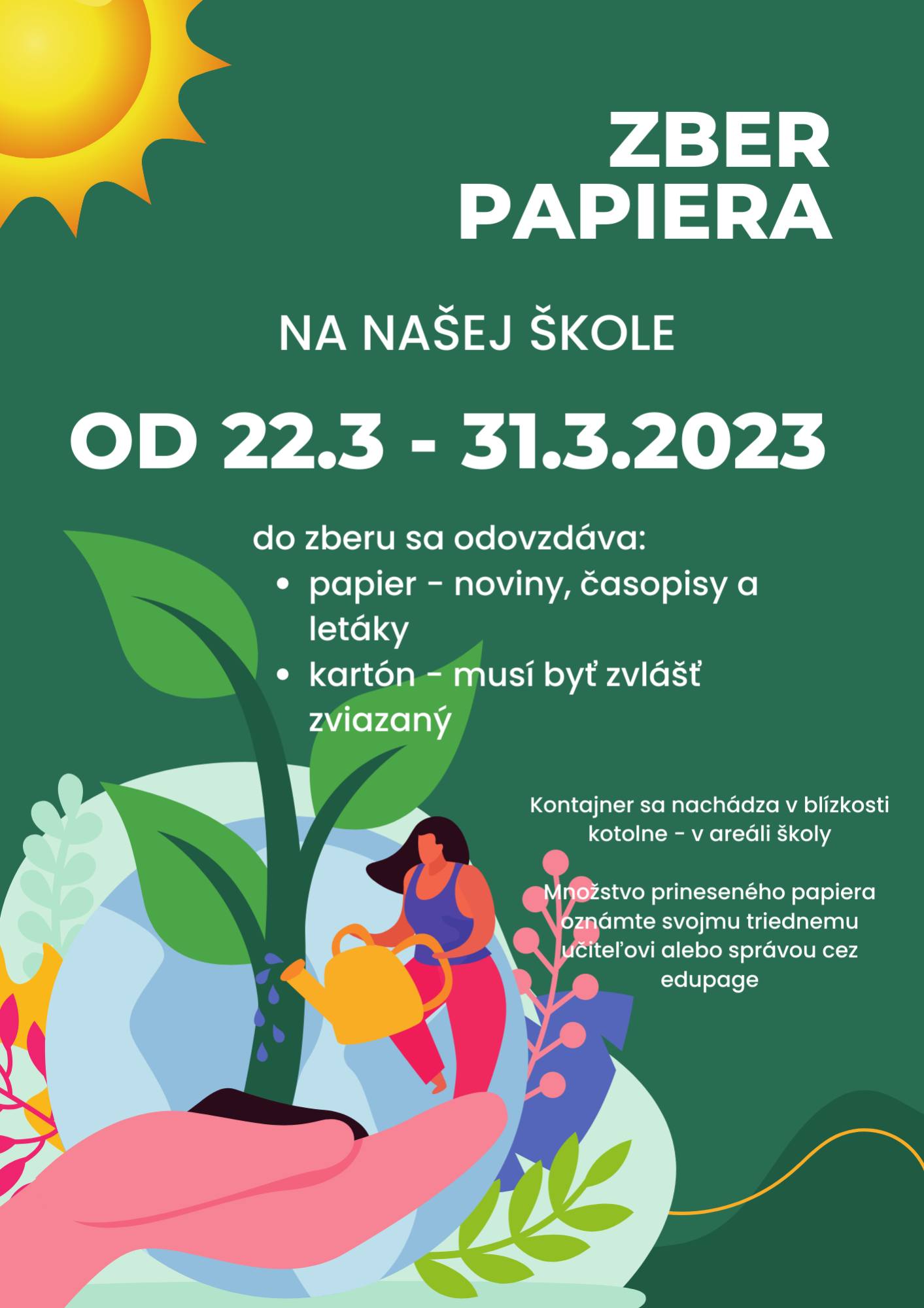 Využívajme v čo najväčšej miere stojiská na triedený odpad (sklo, papier, šatstvo) rozmiestnené po obci a taktiež zberný dvor.