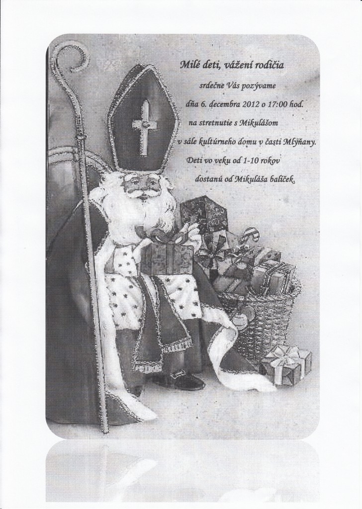 6. december je sviatkom svätého Mikuláša. V tento deň našu obec poctil svojou návštevou práve Mikuláš. Priviedol si so sebou anjela a čerta.